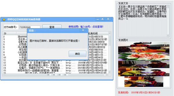打开工具输入QQ号即可查看该QQ号空间时光轴,注意如果是权限空间的话是无法查看的!