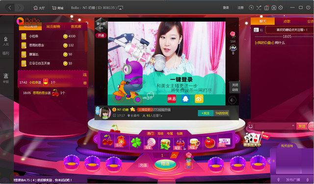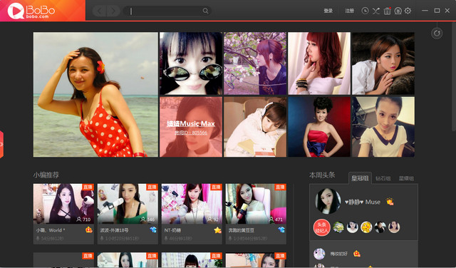 网易bobo是属于互联网明星的互动直播平台,有才艺的人在视频中分享自己的表演,不断地获取越来越多的粉丝关注,粉丝可以给主播赠送虚拟的礼物,获得主播的亲睐,为粉丝和主播搭建起视频交友的互动平台。