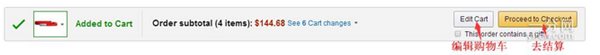 2、即加入购物车成功,可选择Edit Cart编辑购物车,也可Proceed to CheCkout去结算。