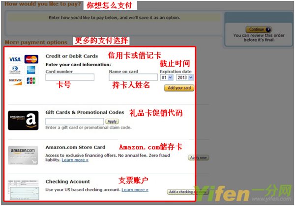 (如果是维萨卡(VISA)请按照下方图示,如果是国内银联卡请参考亚马逊添加国内银联卡支付教程)