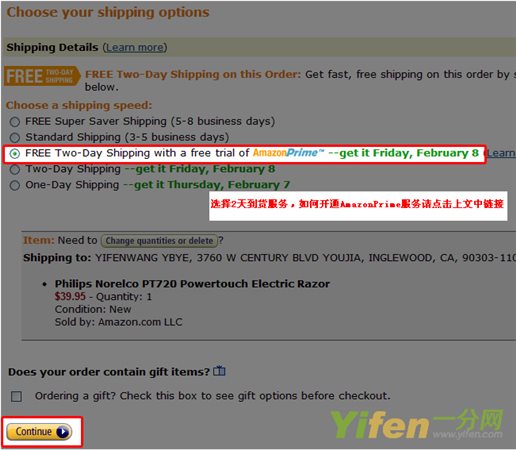 这一步是问你是否要参加Prime的免运费计划,你可以选择No Thanks