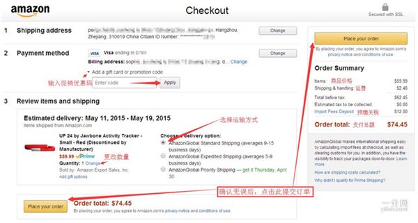 最后一步是账单Review,确认价格和信息无误后可以按Place your order。这时候就下单完成了!