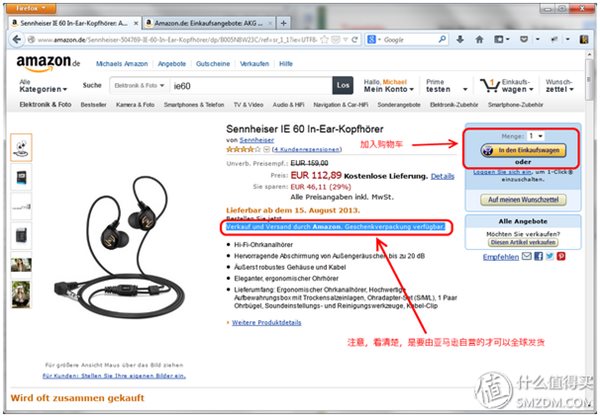 顺利登陆之后,就搜索自己喜欢的东西啦!找到自己心仪的商品,添加进购物车。这里我以购买森海塞尔的耳机为例子。