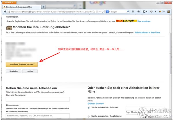 和其他亚马逊一样,接下要选择配送地址。当然你可以直接选择一个以前使用过的,如果是第一次,那么稍微麻烦一点,需要新添加一个地址。