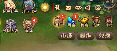 2)达到10级后,点击右上角“礼”图标(注:10级后才可以领取);
