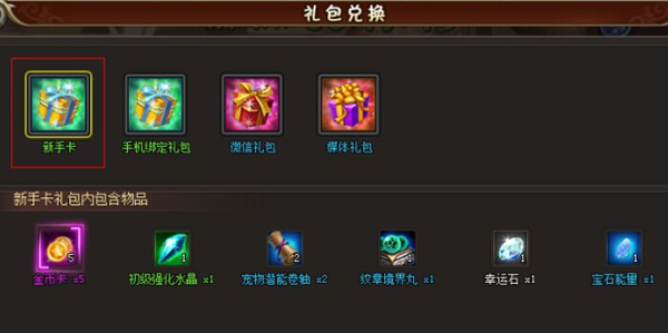 金币卡x5 初级强化水晶x1 宠物潜能卷轴x2 纹章境界丸x1 幸运石x1 能量宝石x1