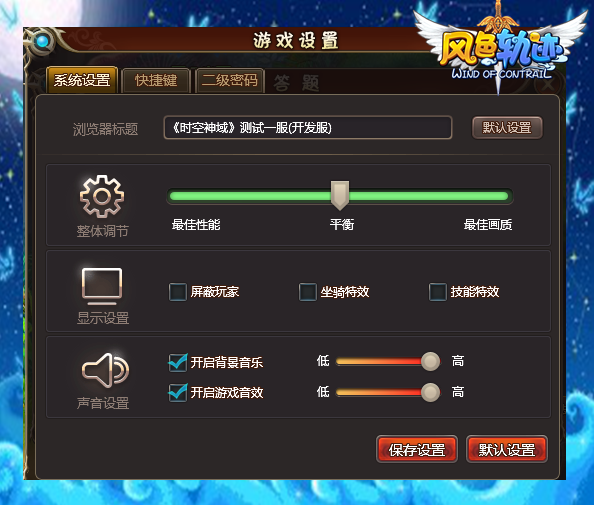 (1)风轨是3D美术画质,玩家可以在游戏设置中选择适合您电脑的配置,保证您能正常的体验游戏哦!