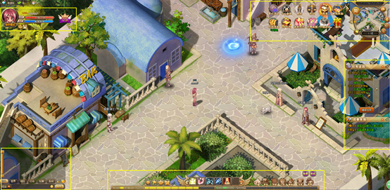 1.角色图标:显示角色头像;级数;礼券;VIP以及集成了和平和挂机按键。2.活动图标栏:游戏中的各种官方活动,包括:开服活动;日常玩法等