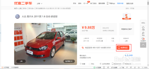 5.找到有意向的车辆之后,可以点击该车辆的照片查看该车辆的详情,通过该界面也可以直接打电话咨询,如下图所示。
