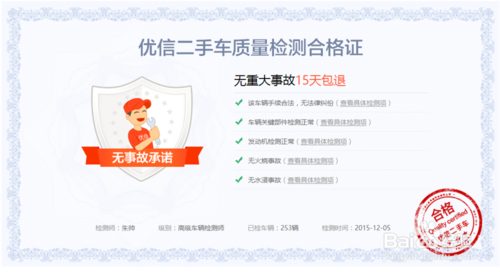 2、优信承诺二手车好车,无重大事故,无火烧,无水淹,汽车专家为您保驾护航
