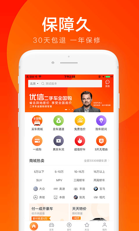 3.全新车市页帮您更清晰了解各种质保服务,现在您可以快速查看、搜索个人车源;