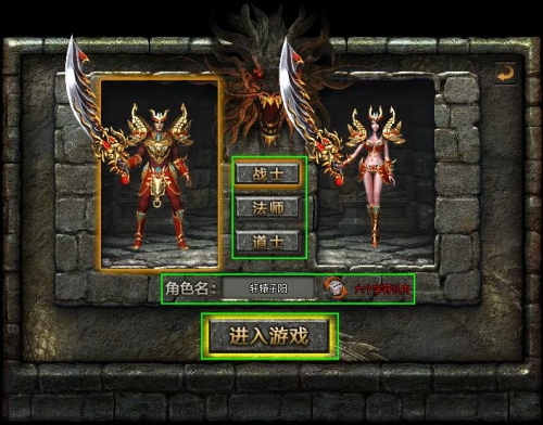 2、可以从战士、法师、道士中选择其中一个作为您的角色职业;