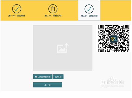 3、然后按照提示填写好“技能描述”、“课程介绍”和“课程封面”,点击保存。