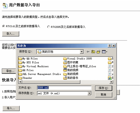 2. 数据同步:目前RTX网络硬盘插件采用手动同步用户数据的方式,从RTX服务管理器中导出用户数据,在网络硬盘插件服务器端导入。