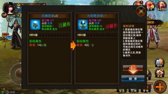 2、当在游戏中获得新装备,开启强化系统后,要及时换装、强化武器,因为《古剑奇谈》特有的装备继承系统使你不必担心浪费金钱和时间。下一级装备会自动继承升一级装备的属性。