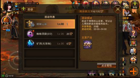 当玩家达到18、20级时,开启赏金、活动系统,参与完成其中的活动,将获得大量奖励物品,更加有助于升级!