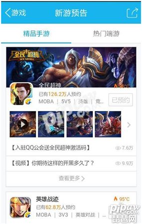 手机QQ预约方法:动态--游戏--新游--精品手游--找到全民超神这个游戏--点击右边预约即可。