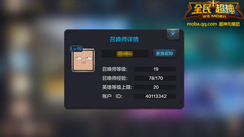 A板块:玩家个人头像、召唤师昵称和召唤师等级,以及等级经验值比例。点击头像后还能看到数值,以及个人账户ID,账户ID可在游戏中直接用于添加好友。