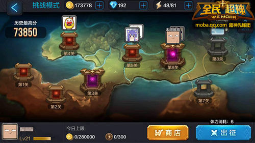 F板块:挑战模式,同样是副本关卡,只不过这里的副本难度跨度更大。另外好友闯关的成绩也会在这里进行你追我赶。