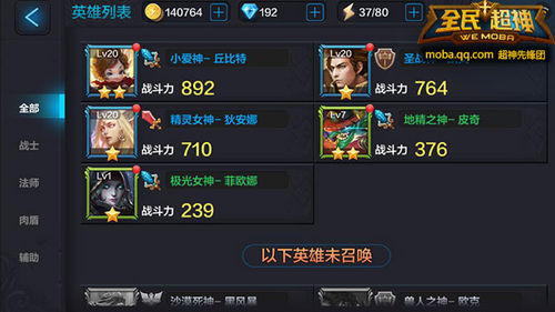 H板块:玩家当前的英雄组合阵容,以及总的攻击力。点击英雄头像可详细查看英雄的资料,以及对英雄进行各种养成操作。