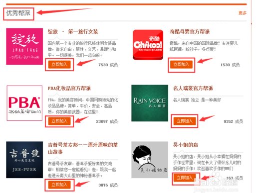6、在帮派首页的下面我们可以看到一些优秀的帮派,我们可以点击“立即加入”加入到自己喜欢的帮派中了