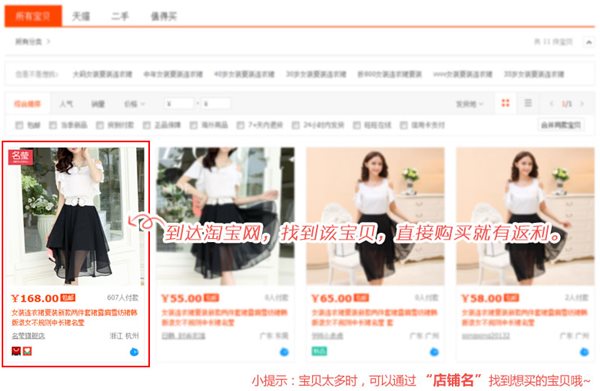 淘宝钻以上卖家店铺展示,从本频道进入店铺均可获得一定比率的返利。