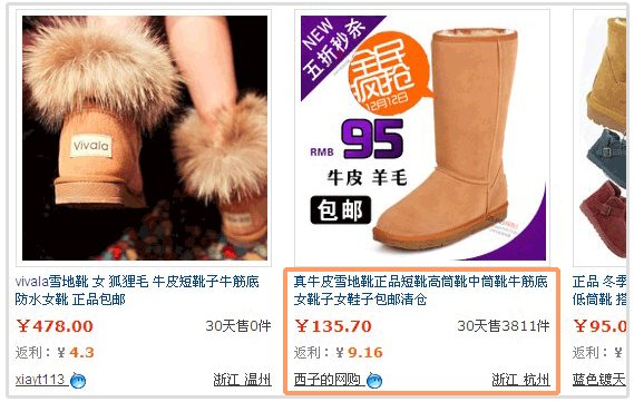 注:您也可以先在淘宝网选购非虚拟商品,选购完后复制该商品名称至淘宝返利搜索,如淘宝返利有搜索结果,则该商品有返利