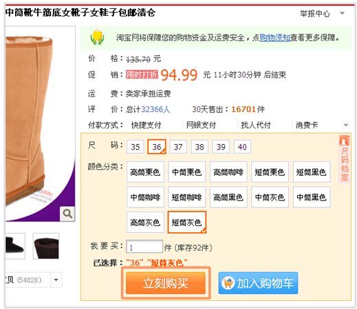 请点击“立即购买”继续淘宝网购物流程,需登录您的淘宝网账户;在您收到宝贝以后,请在淘宝网中确认收货,完成购买淘宝网商品流程