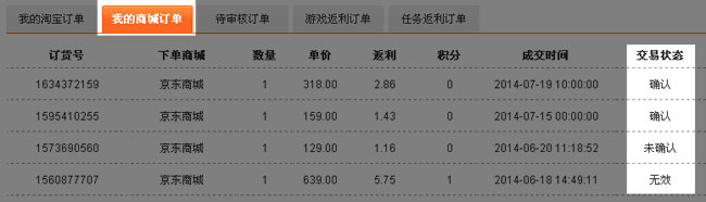 2.“确认”——说明您通过本站去商城下单付款并成功完成交易了 且已经成功返利了。