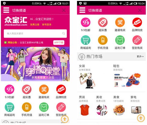 众宝汇是国内首家集折扣、返利、分享为一体的纯买家导购平台。提供购物返利、独享折扣商品、最新最全优惠信息等服务,致力于为中国的网上购物用户带来全新的网购体验。