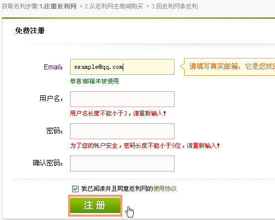 请先免费注册返利网,如已拥有返利网账户,请登录