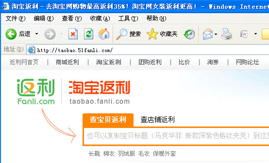 请在返利网首页点击“淘宝返利”或在浏览器输入taobao.51fanli.com,进入淘宝返利频道