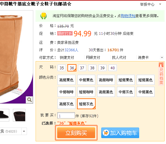 请点击“立即购买”继续淘宝网购物流程,需登录您的淘宝网账户;在您收到宝贝以后,请在淘宝网中确认收货,完成购买淘宝网商品流程