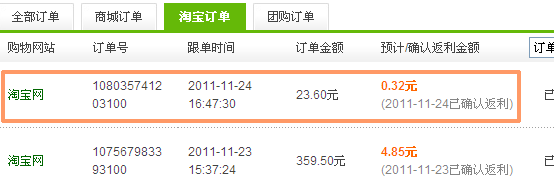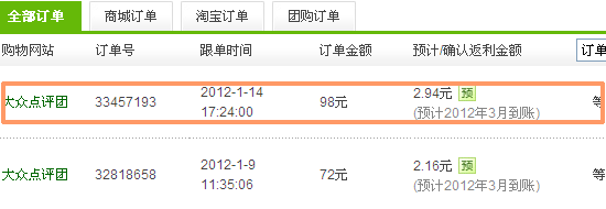 我的返利网-订单查询中跟单,成功后再于团购网站支付