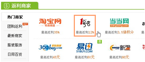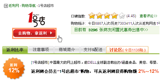 注:请仔细查看返利说明及注意事项;然后点击“去购物,拿返利”按钮进入商家网站购物即可
