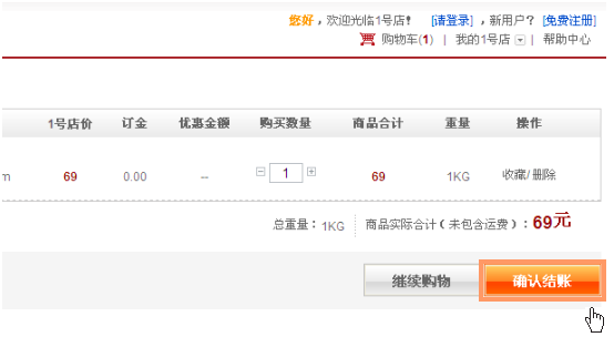 注:确认结账后请填写您的收货信息、选择支付方式,直至生成订单号