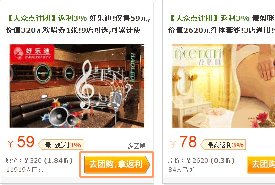 请选择您感兴趣的团购商品后,点击“去团购,拿返利”按钮前往团购网站