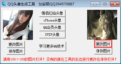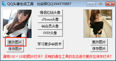 QQ头像生成工具软件可以制作男生、女生、非主流、情侣,包括情侣红钻头像、iPhone头像、QQ会员头像、SVIP头像等类型的QQ头像。软件绿色免费,喜欢的朋友赶快下载。【使用方法】