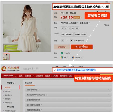 第一步:复制标题复制淘宝/天猫宝贝标题,到开心返利搜索