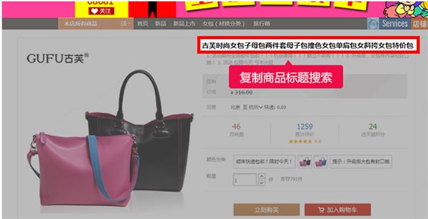 搜索框下单:在淘粉吧搜索框内搜索关键字或者商品标题,到爱淘宝页面找到要购买的商品立即下单。
