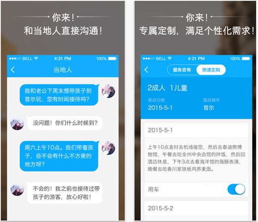 在这里,每一位游客都能根据自己的性格、喜好,以及行程需要找到合适的当地人,与他们直接沟通,确定细节,并通过APP支付预订服务,过程简便!