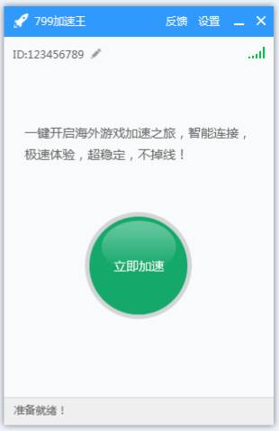 799加速王是一款永久免费的专业海外VPN加速软件,使用独家国际网络加速服务,软件去除所有繁琐设置,只需一键点击立即智能加速。 使用799加速王将帮助您改善网游速度、减少网络延迟、拒绝频繁掉线,确保顺畅游戏。