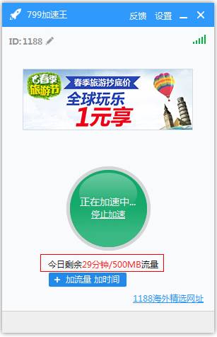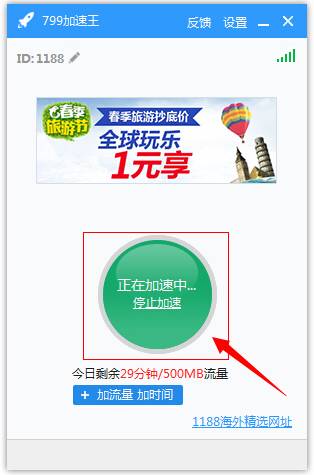 点击“停止加速”按钮即可停止加速,剩余体验时间也会保留。