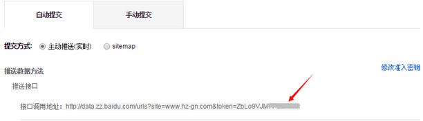 第二步是输入准入密钥,在百度站长平台后台登陆后有这个密钥。对应的域名填上对应的密钥。如: