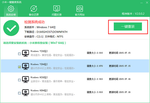 小米一键重装系统是一款所占内存非常小,但是功能强大实用并且操作简单的一键重装系统工具。它可以帮助用户快速重装系统,还可以帮用户选择最适合的系统重装,如果你的电脑需要重装,那就快来下载小米一键重装系统吧!