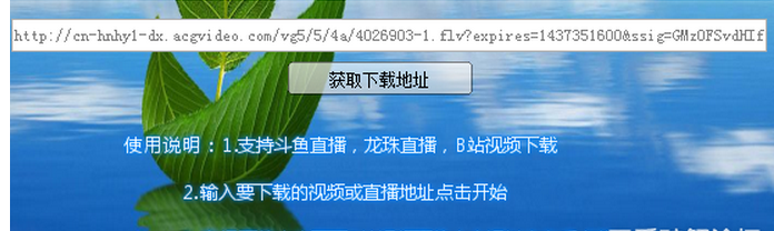 B站视频下载工具是一款支持下载龙珠直播/斗鱼直播/B站这三个网站直播视频的下载工具,软件绿色小巧,用起来非常的简单方便!软件能够用于观看龙珠直播、斗鱼TV以及B站(哔哩哔哩)等视频,用户可以通过直播或在线视频的链接解析到视频的下载地址,之后就可以用浏览器或下载工具下载视频了。有了这款B站视频软件,你还用担心视频无法保存到本地么。可以把喜欢的视频下载下来,保存之后慢慢看!【使用方法】