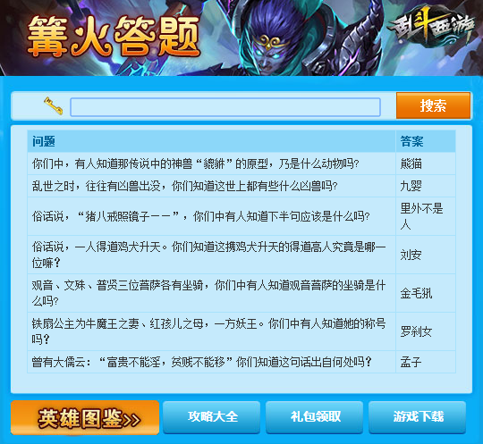 乱斗西游篝火夜话答题器是一款乱斗西游篝火夜话的答题工具,乱斗西游答题器能够让玩家在答题关节百分之百轻松过关,获得更丰厚的奖励,操作也十分简单,只需简单的输入关键词,即可找到所有该字眼的问题以及答案。