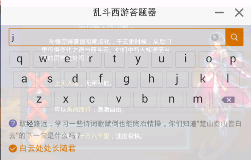 1、打开乱斗西游答题器,就可以输入你需要知道的答案;