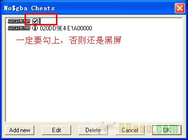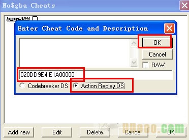 6、点击“add new”,输入金手指代码“020DD9E4 E1A00000”;