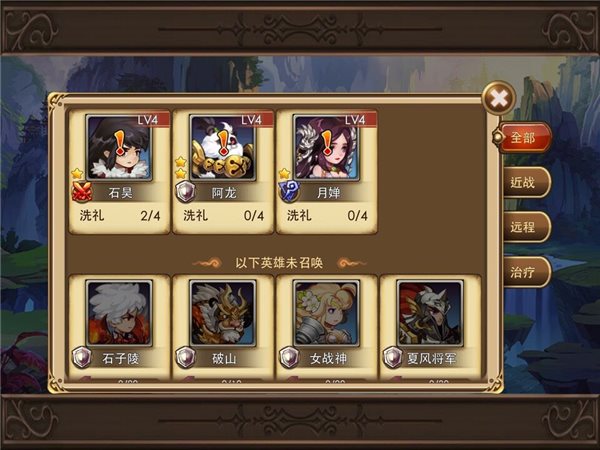 点击希望其参战的英雄,即可编入队伍。最多可选择四位英雄。经典阵容为:前排*2+后排*2,后期有新英雄加入后,可根据英雄技能特点,自创出各种新奇阵容。